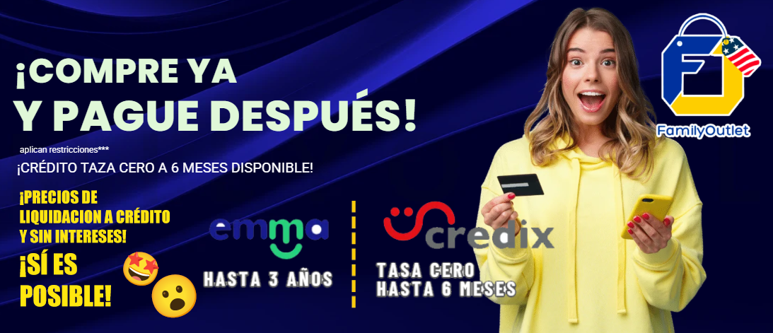 Tasa cero intereses hasta los 6 meses. Con Credix y Family outlet, ¡Los mejores precios y a crédito sin intereses es posible! 🤩