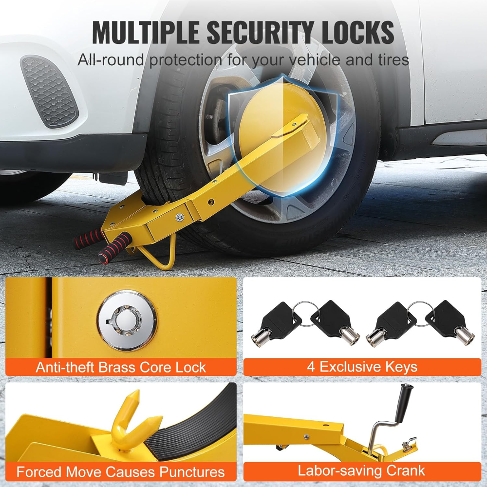 La Abrazadera de Bloqueo de Rueda VEVOR es un sistema antirrobo de alta resistencia (paquete de 2) para remolques, caravanas y vehículos.