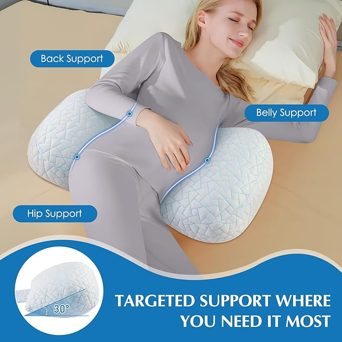 Almohadas de embarazo para dormir, almohada de maternidad portátil con funda extraíble refrescante