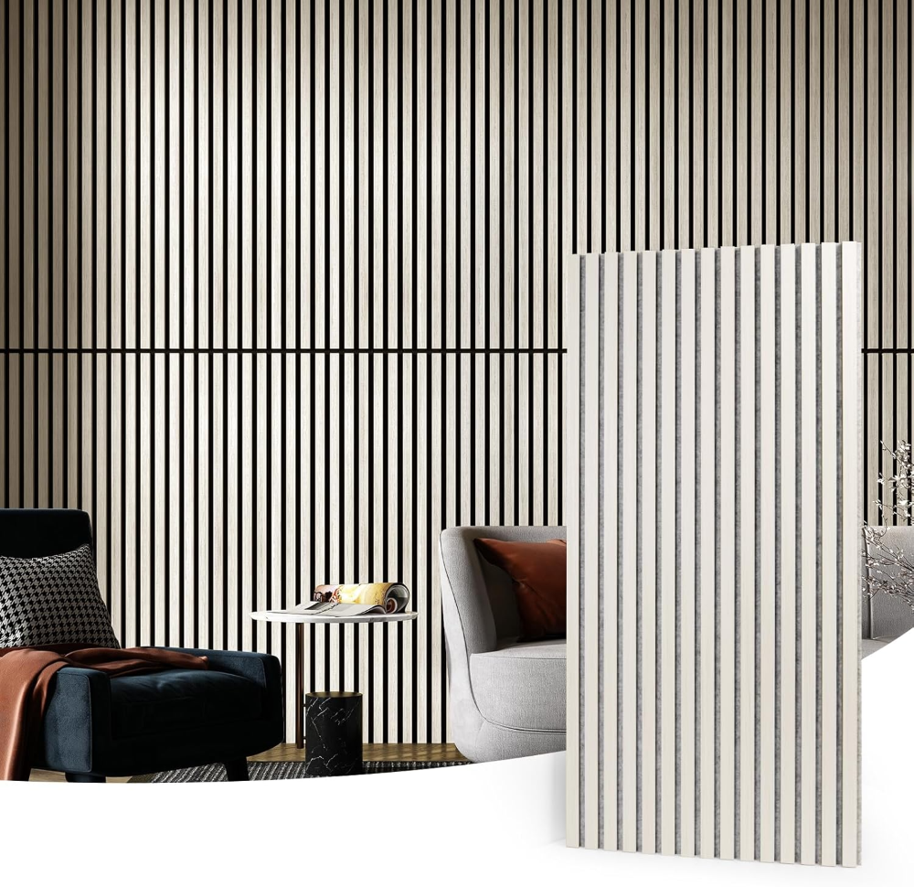 Art3d 2 paneles acústicos de listones de madera para pared y techo, panel de absorción de sonido acanalado 3D con acabado de madera, olmo blanco VALORADO