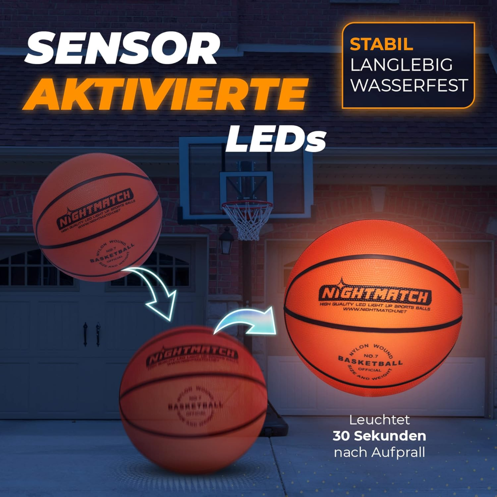 Balón de baloncesto NIGHTMATCH ? LED tamaño 7, brilla en la oscuridad, incluye bomba y baterías extra. Resistente al agua y de alta luminosidad.?