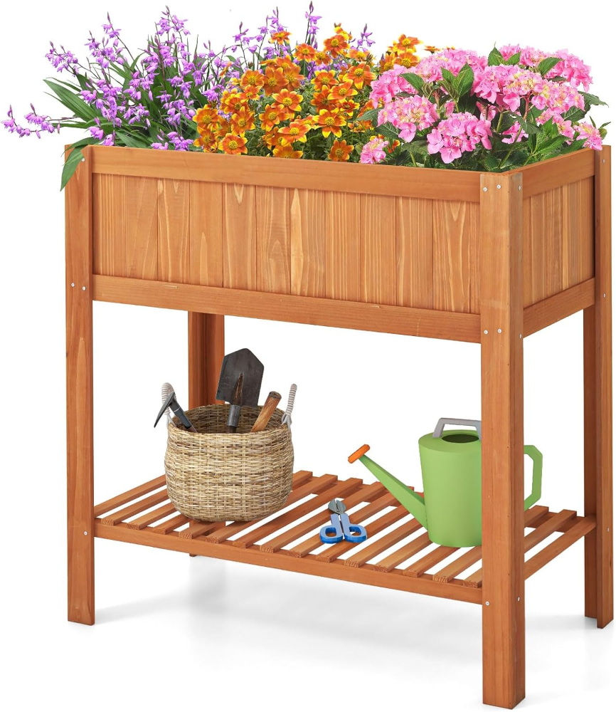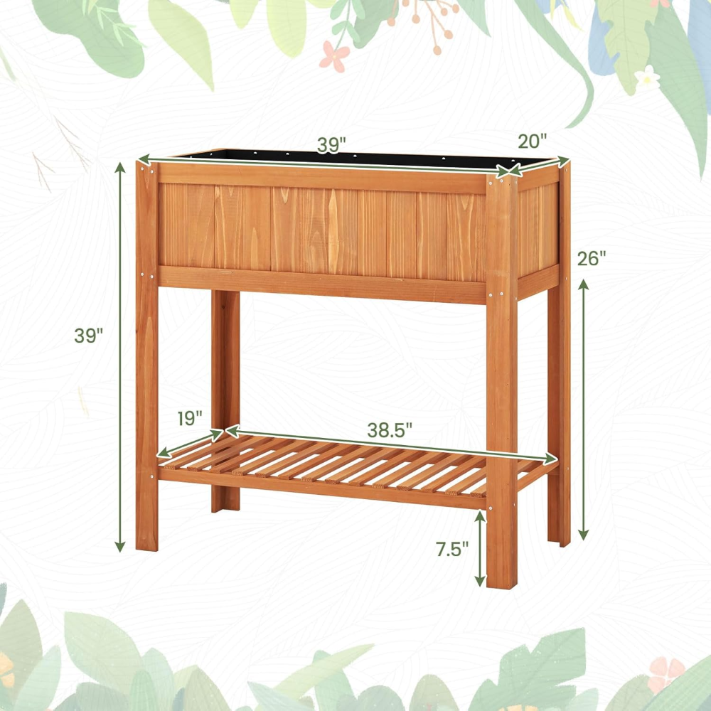 Cama de jardín elevada, maceta de madera con estante de almacenamiento y para verduras, flores y hierbas, maceta elevada de 2 niveles para patio trasero, patio, balcón, invernadero, 39 x 20 x 39 plg.