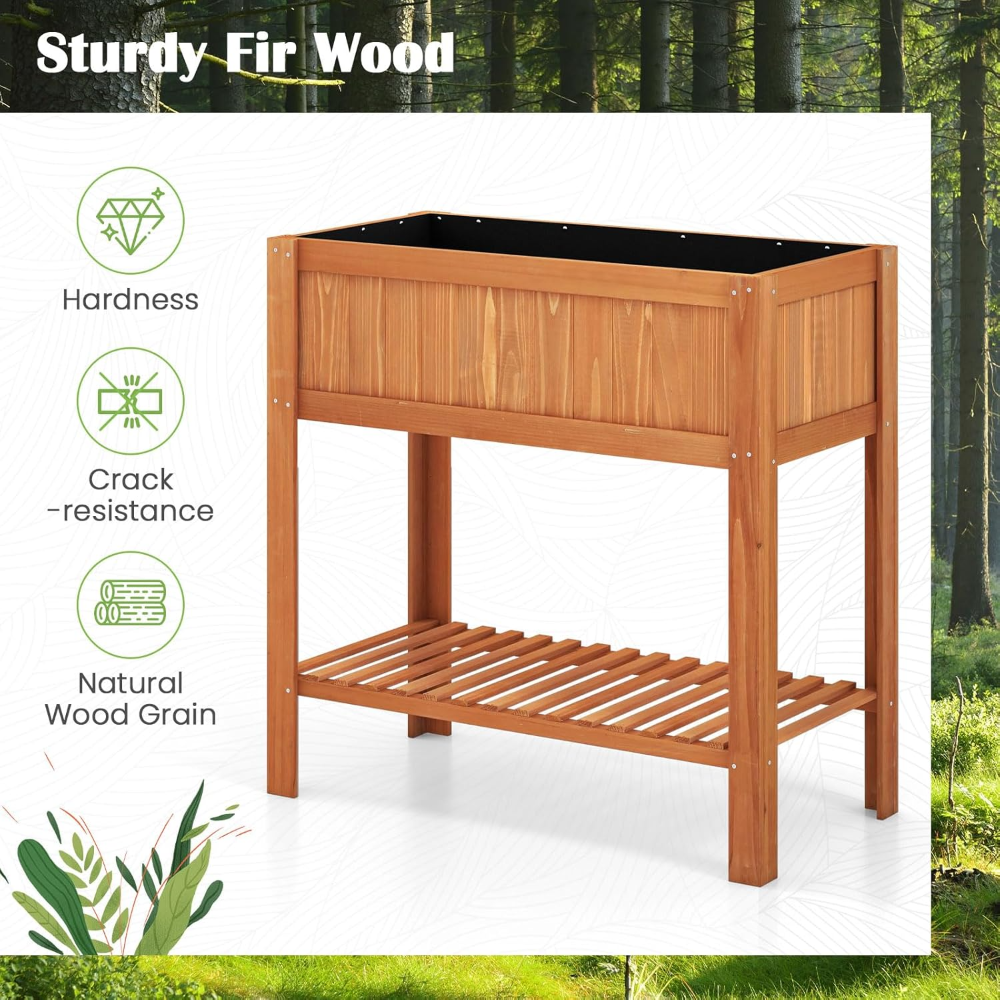 Costway cama elevada de jardín en madera de abeto natural. Ideal para cultivar vegetales, flores, hierbas y plantas decorativas en patios, balcones o terrazas. Cuenta con división central removible, fondo abierto para mejor drenaje y estructura resistente para mantener el cultivo ordenado y fácil de cuidar.