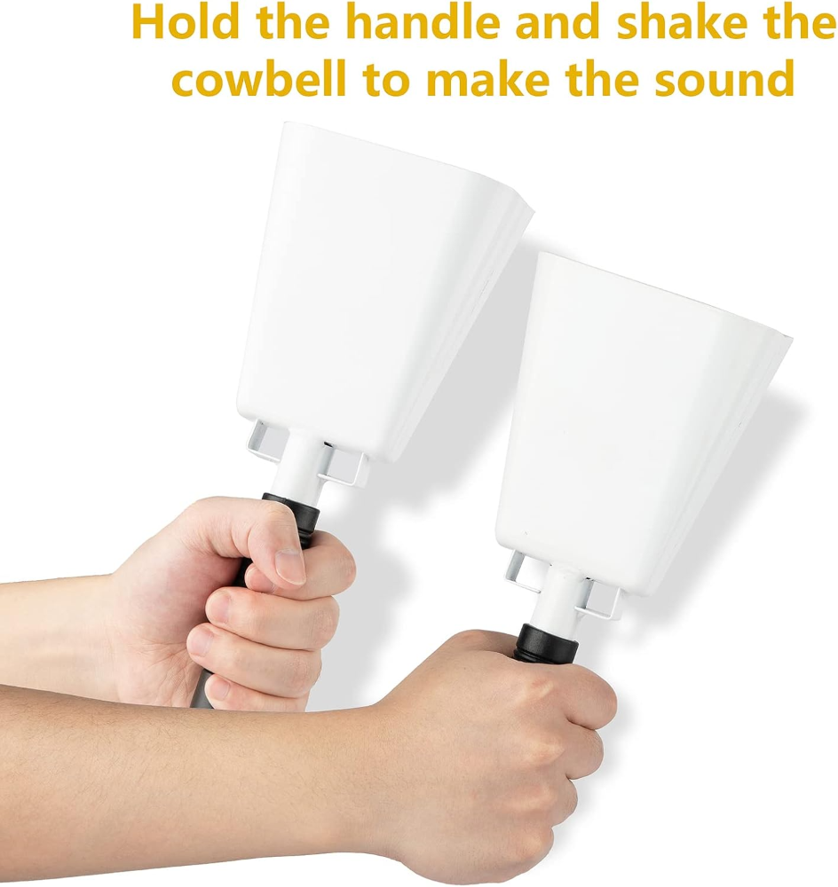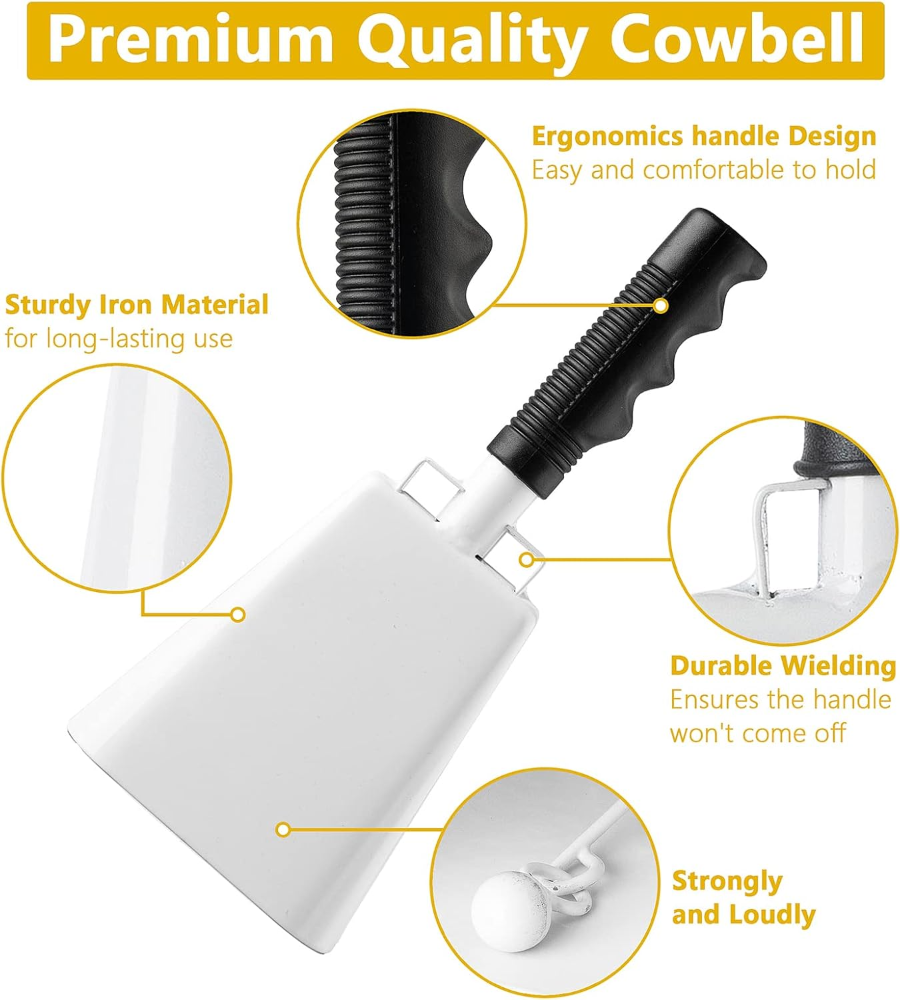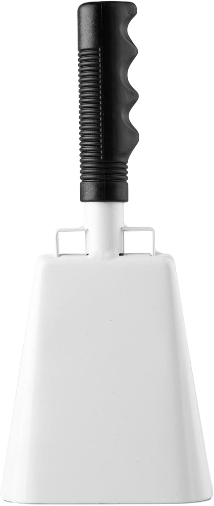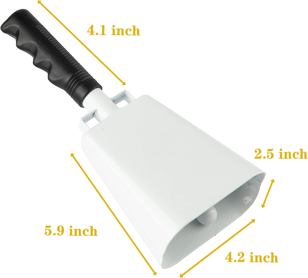 Campana de vaca de acero con asa, campana de animación y ruidos fuertes para eventos deportivos, juegos de fútbol, escuela, granja, color blanco (10 pulgadas)