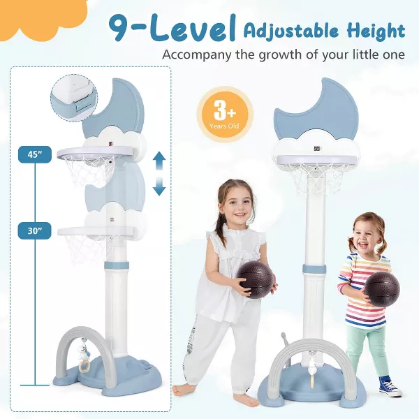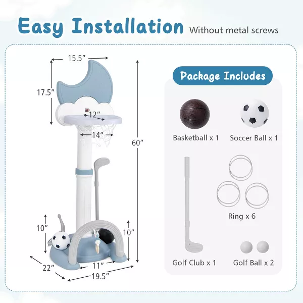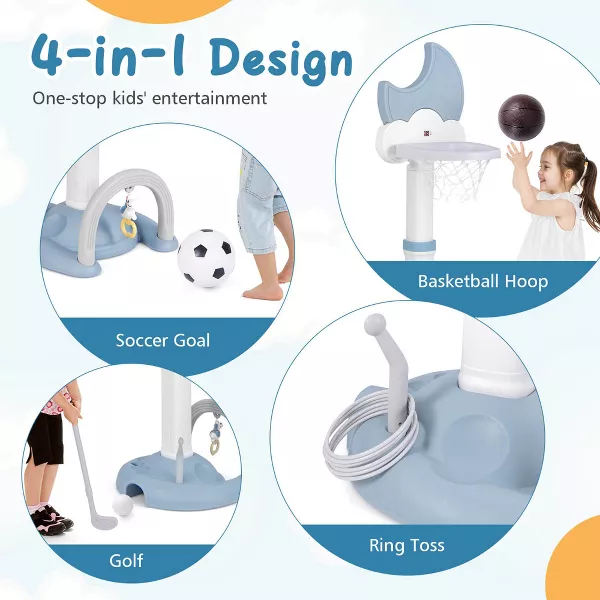 Modelo: 4-in-1 Toddlers Basketball Hoop with Basketball Soccer Golf and Ring Toss Game