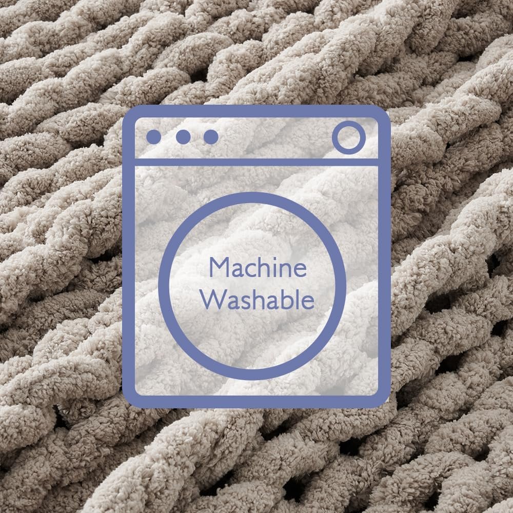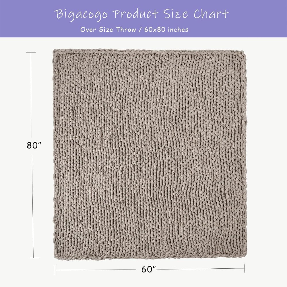 Cobija de punto grueso de 60 x 80 pulgadas, de felpilla, 100% tejida a mano, cobija grande de punto trenzado suave y grueso, con nudo de cuerda grande para sofá, cama (gris pardo claro)