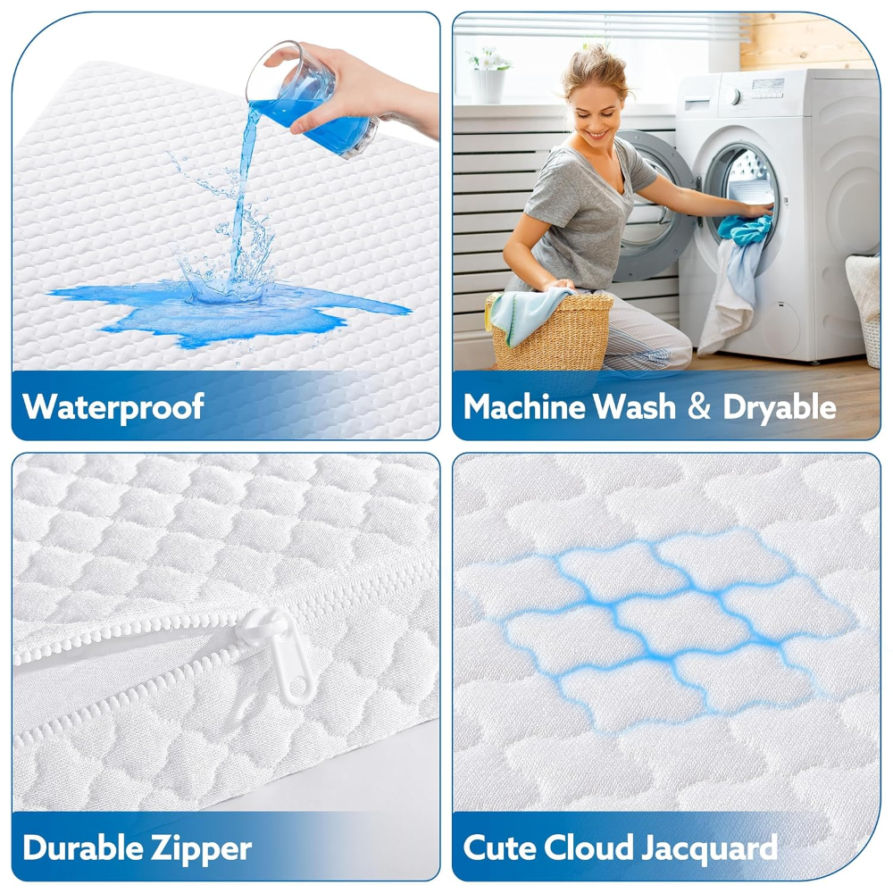 Funda impermeable, hipoalergénica y lavable a máquina.