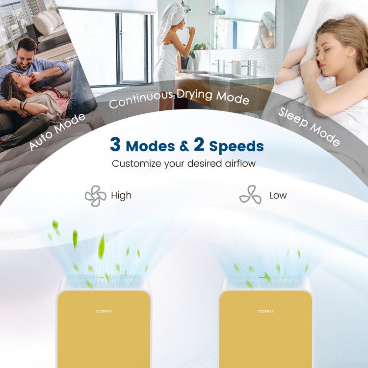 El Costway 32 Pints/Day Portable Quiet Dehumidifier es un deshumidificador portátil ideal para controlar la humedad en espacios de hasta 232 m². Su funcionamiento silencioso y su capacidad de extracción de hasta 32 pintas por día lo hacen práctico para dormitorios, salas y oficinas. Incluye tanque de 1.89 litros, opción de drenaje continuo con manguera y ruedas para moverlo fácilmente. Su estructura en ABS ofrece resistencia y ligereza, convirtiéndolo en una solución funcional para mejorar el ambiente y proteger el espacio del exceso de humedad.
