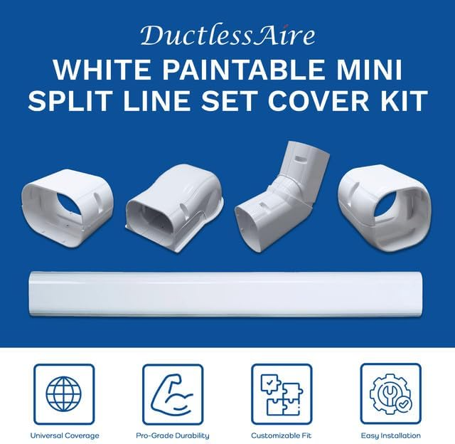 DuctlessAire -Canaleta para aires acondicionado, color blanco, resistente a la intemperie, fácil instalación, diseñado para sistemas centrales o mini split sin conductos, 3 pulgadas x