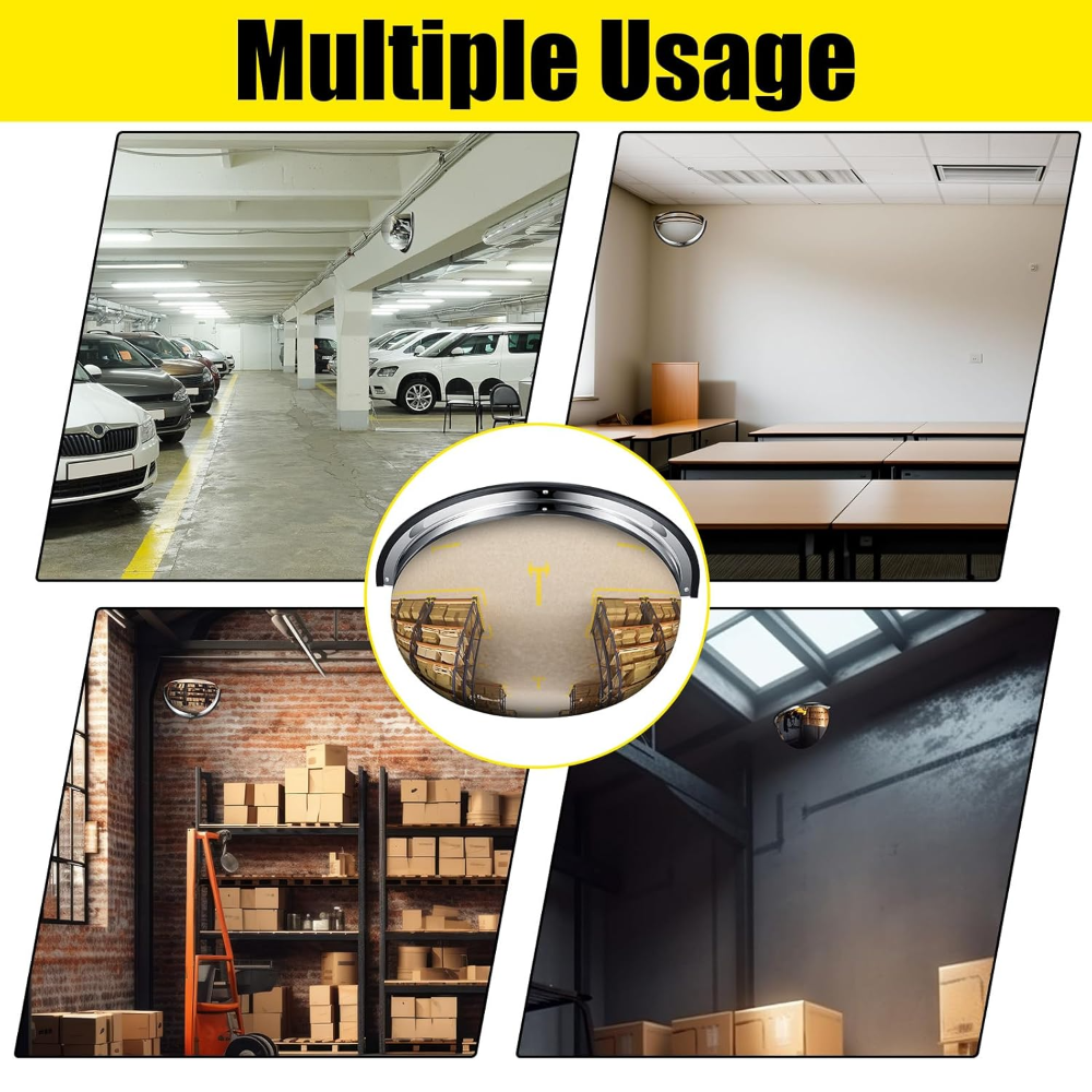 Espejo de esquina de 18 pulgadas para seguridad de pared, espejo convexo acrílico de media cúpula interior para techo, entrada, pasillo, exterior, almacén, oficina, vista lateral