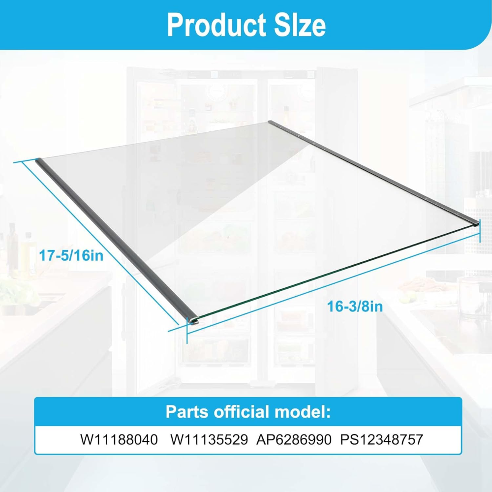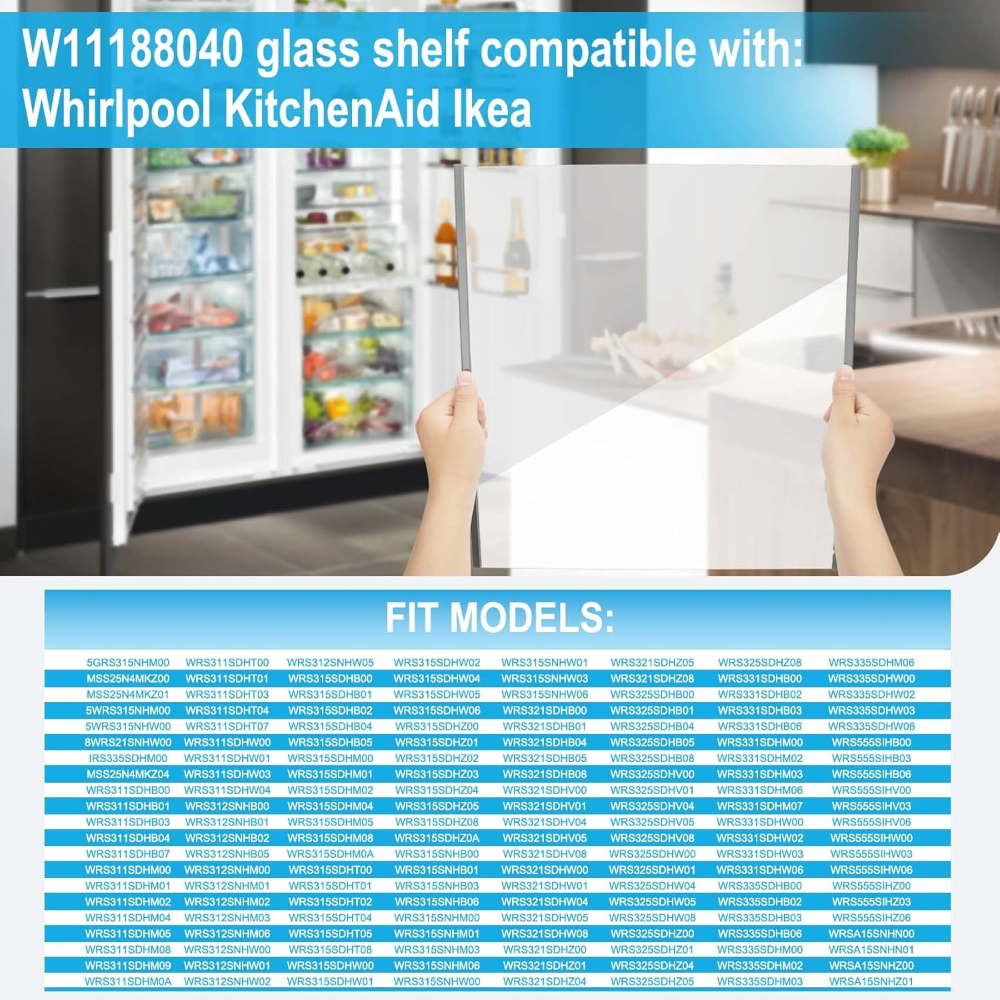 Compatibilidad amplia: Diseñado para reemplazar los estantes superiores de varios modelos de refrigeradores de las marcas Whirlpool, Maytag, KitchenAid e Ikea. Si no estás seguro, los detalles del producto incluyen una lista de modelos compatibles.