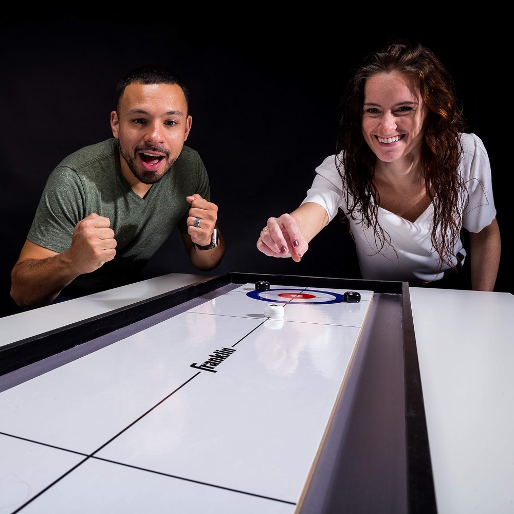 Franklin Sports Juego de mesa de tejo y rizador 2 en 1, juego de mesa portátil que incluye 8 mini discos rodantes, 114 cm