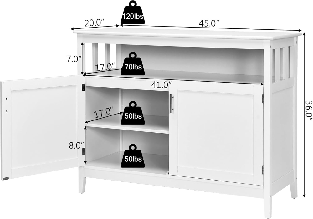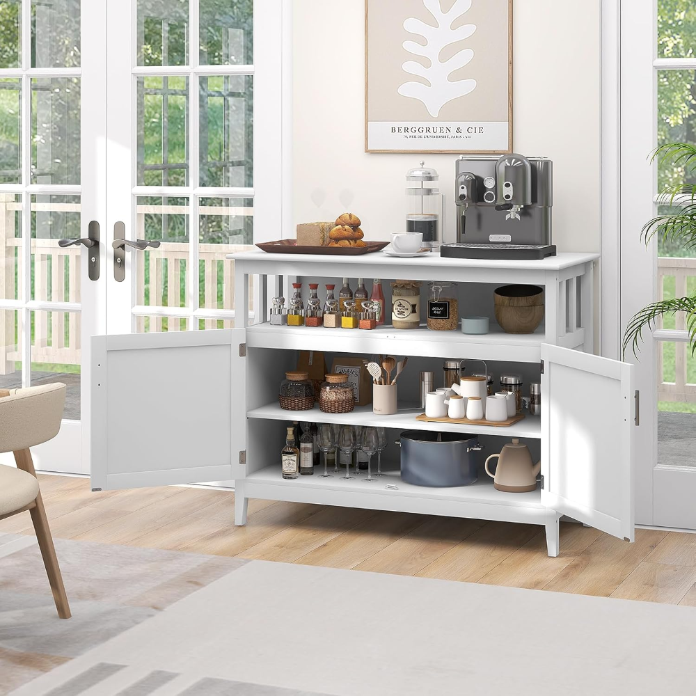 El gabinete buffet SILKYDRY, modelo Storage Sideboard with Adjustable Shelf, es un mueble versátil y funcional ideal para cocina, comedor, sala o área de café. Su diseño tipo aparador permite utilizarlo como estación de barra de café, mueble para vajilla o gabinete auxiliar, aportando orden y estilo a distintos espacios del hogar.