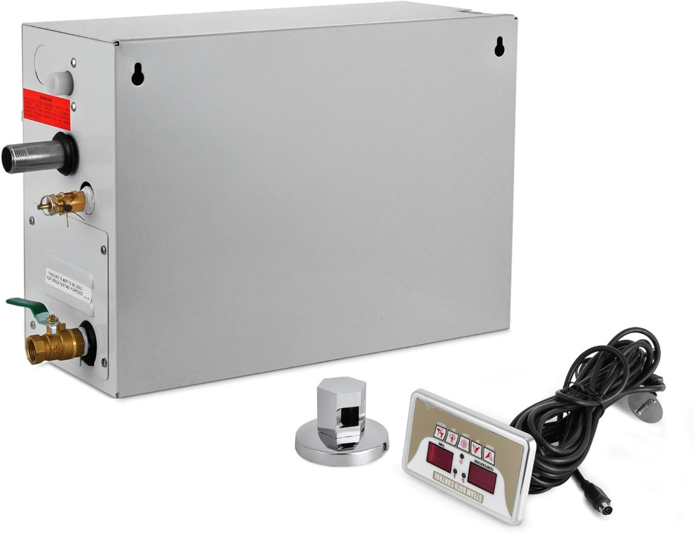 El generador de vapor Happybuy 9KW está diseñado para duchas de vapor residenciales o comerciales, ofreciendo un rendimiento potente y constante. Funciona a 220V-240V y es ideal para spa en casa, baño, hotel o centros de bienestar. Incorpora controlador programable externo para ajustar temperatura y tiempo de funcionamiento con facilidad. Su interior cuenta con tubo de calefacción en acero inoxidable 304, garantizando calentamiento rápido y durabilidad. Integra sistemas de protección contra sobrepresión y funcionamiento en seco para mayor seguridad.