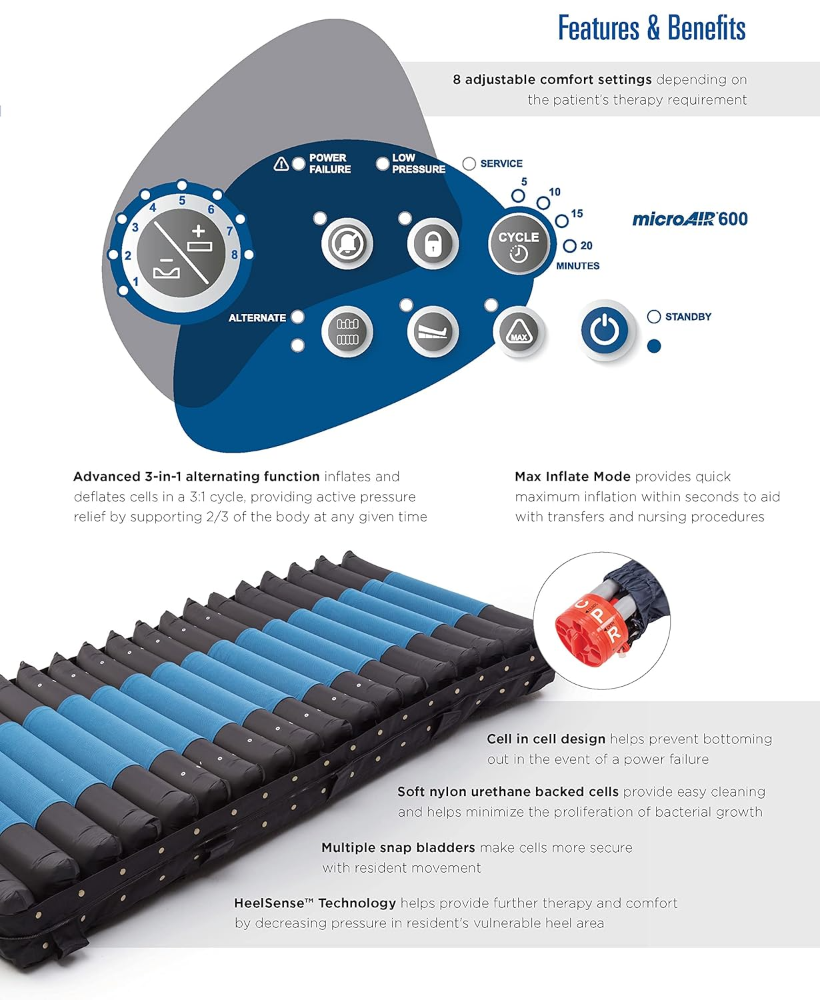 Invacare MicroAIR – Sistema avanzado de colchón de presión alterna, capacidad de peso de 500 libras, MA600