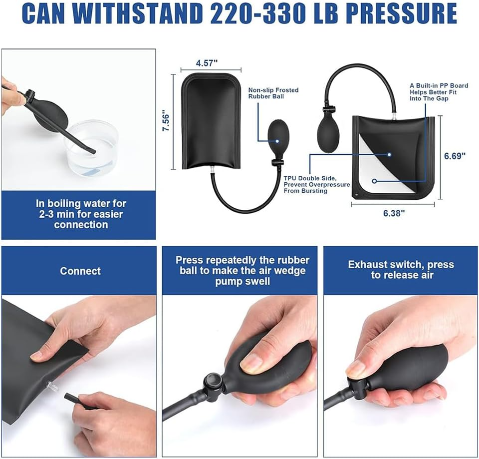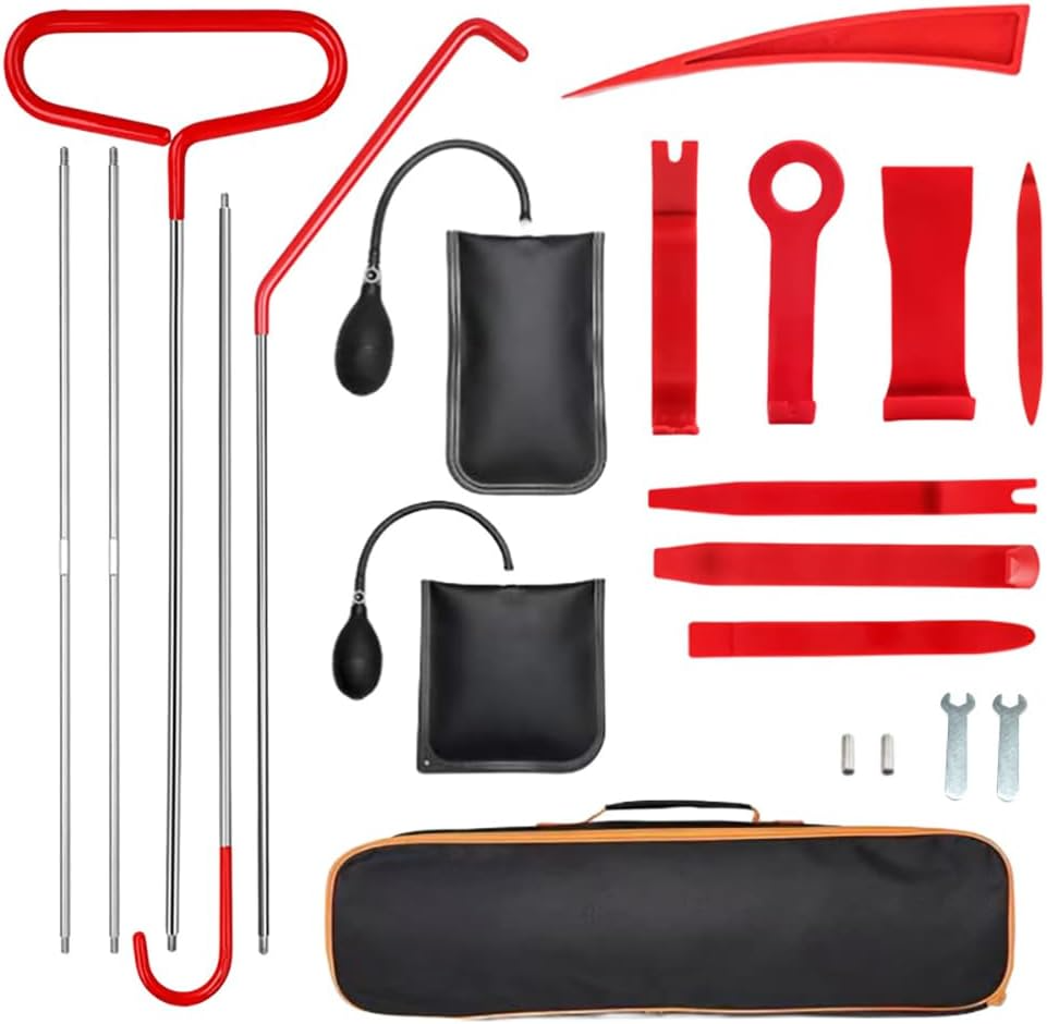 Kit de herramientas para coche, 22 piezas, herramientas profesionales, con gancho de largo alcance, bomba de cuña neumática, cuña antirayaduras, herramientas para quitar molduras, bolsa de transporte