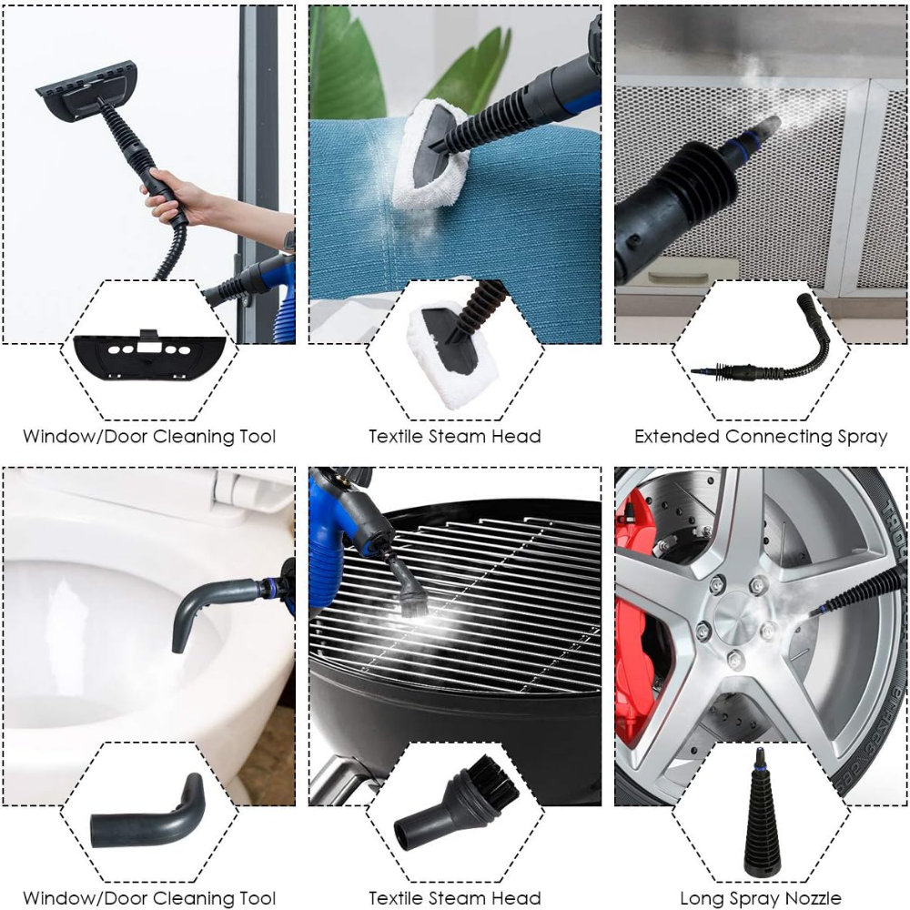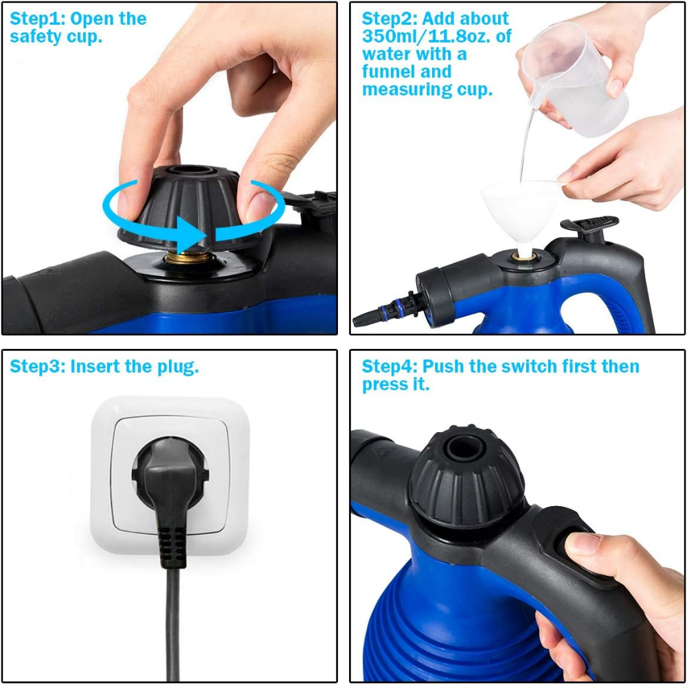 Limpiador de vapor de mano de 1050 W, potente vapor, desinfectante, vaporizador, plancha de vapor, elimina manchas y grasa del baño, cocina (azul)