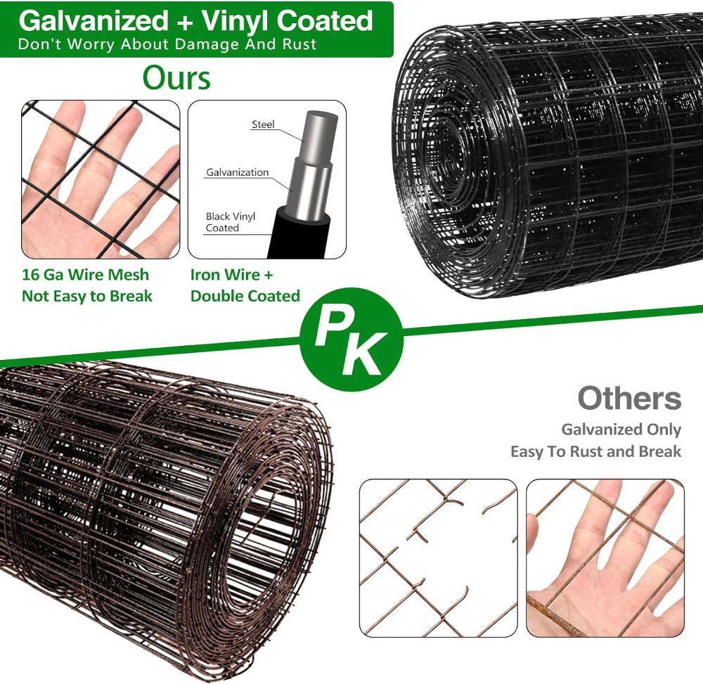 Malla de alambre calibre 16 recubierta en PVC, 122 cm x 15.2 m, cuadricula 5×5 cm, ideal para bordes de jardín y protección de plantas.