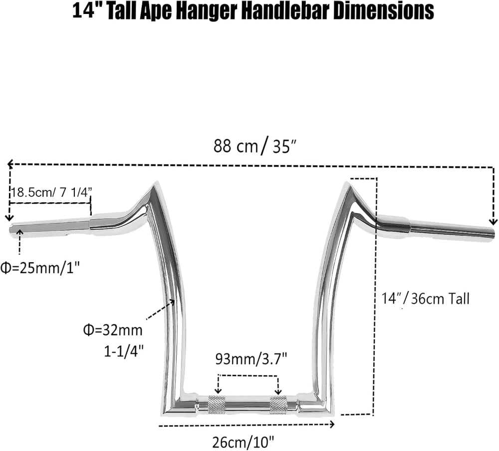 Manillar Ape de 14? cromado para Harley Sportster 883 1200 XL Softail FLST FXST Dyna, Road King 1994-2023, barra de mango Road Glide 1998-2013, barra de gancho de abrazadera de 1.25?