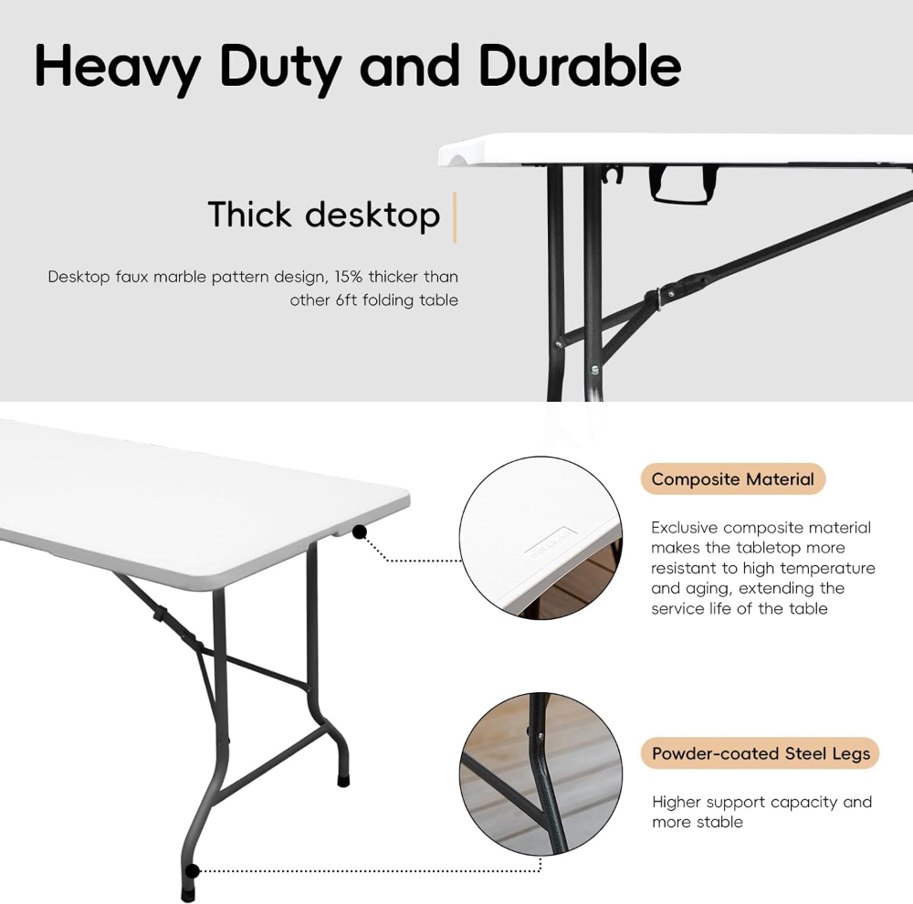 Mesa plegable de polietileno de alta densidad de 6 pies para banquetes plegable por la mitad, mesa de utilidad para trabajo, reuniones, picnic, camping, bodas, catering, comedor de jardín