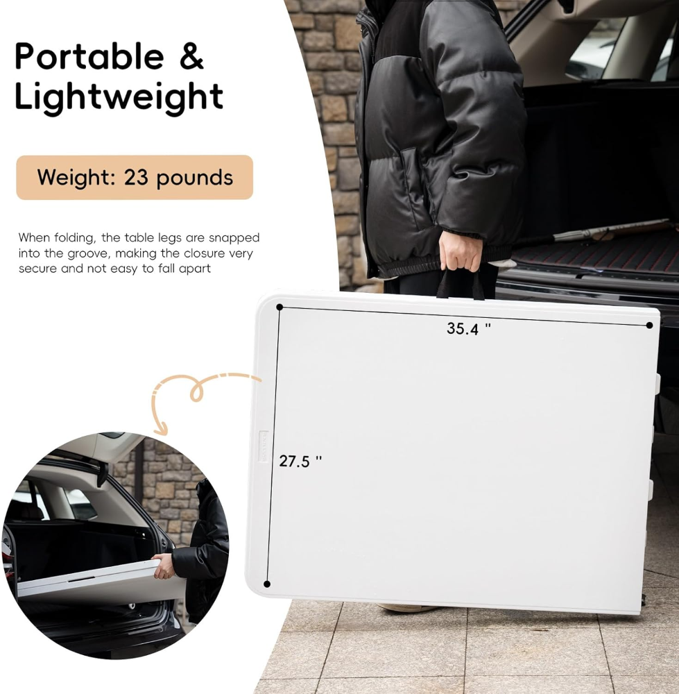La pollilar 6FT Folding Table es una mesa plegable de 6 pies ideal para reuniones, banquetes, comidas, eventos y uso diario en interiores o exteriores. Su superficie amplia permite acomodar de 6 a 8 personas, por lo que resulta muy práctica para fiestas, picnics, catering o como mesa de apoyo en casa y oficina. Está fabricada con tablero plástico resistente y estructura de acero aleado, ofreciendo estabilidad, durabilidad y fácil limpieza. Su diseño plegable a la mitad facilita el almacenamiento y el transporte, mientras sus patas firmes permiten un montaje rápido y sencillo. Es una opción funcional, portátil y versátil para múltiples ocasiones.