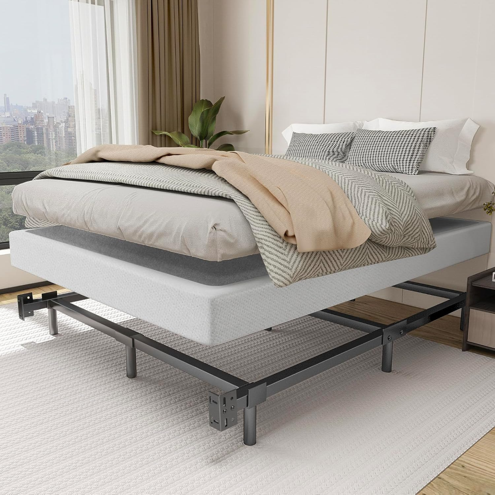 La estructura de cama Noah Megatron tamaño Queen está diseñada para ofrecer un soporte firme, silencioso y duradero para colchones sin necesidad de box spring. Fabricada en acero de alta resistencia, cuenta con 9 patas reforzadas que distribuyen el peso uniformemente y mantienen la cama estable incluso con uso diario. Su diseño robusto reduce chirridos, evita movimientos molestos y prolonga la vida útil del colchón.