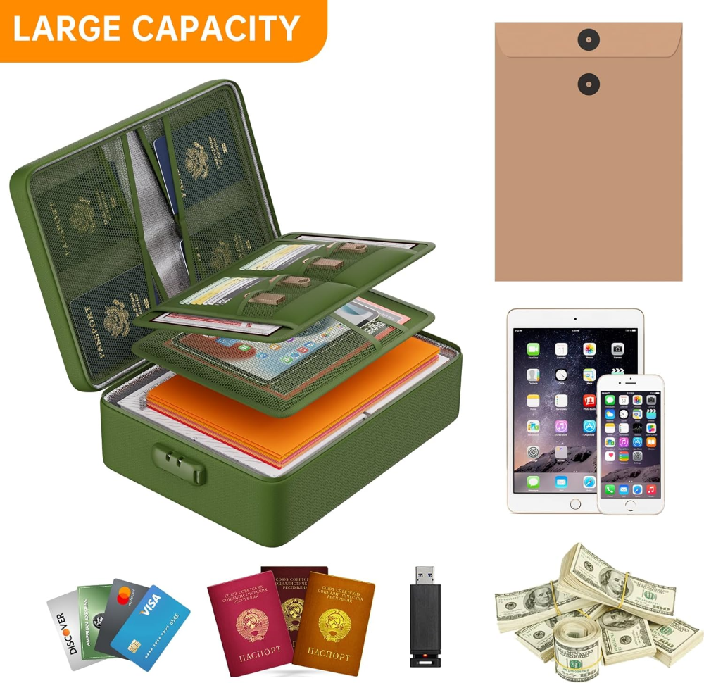 Organizador de Documentos con Cerradura, Caja de Archivos Aislada Térmica y Resistente al Fuego 5200°F y al Agua de 8 Capas, Caja Portátil para el Hogar y Viajes para Documentos