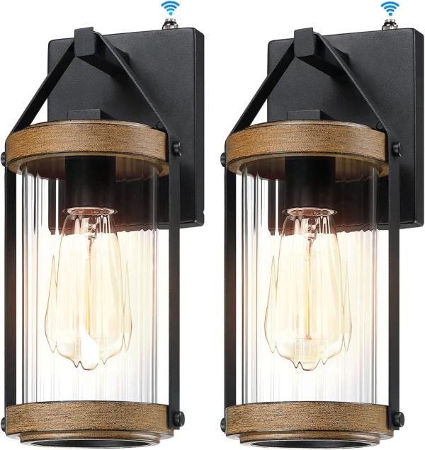 Paquete de 2 lámparas de pared para exteriores del atardecer al amanecer, sensor de fotocélula, farol exterior, iluminación impermeable, lámpara de montaje en pared exterior para casa, patio, garaje,
