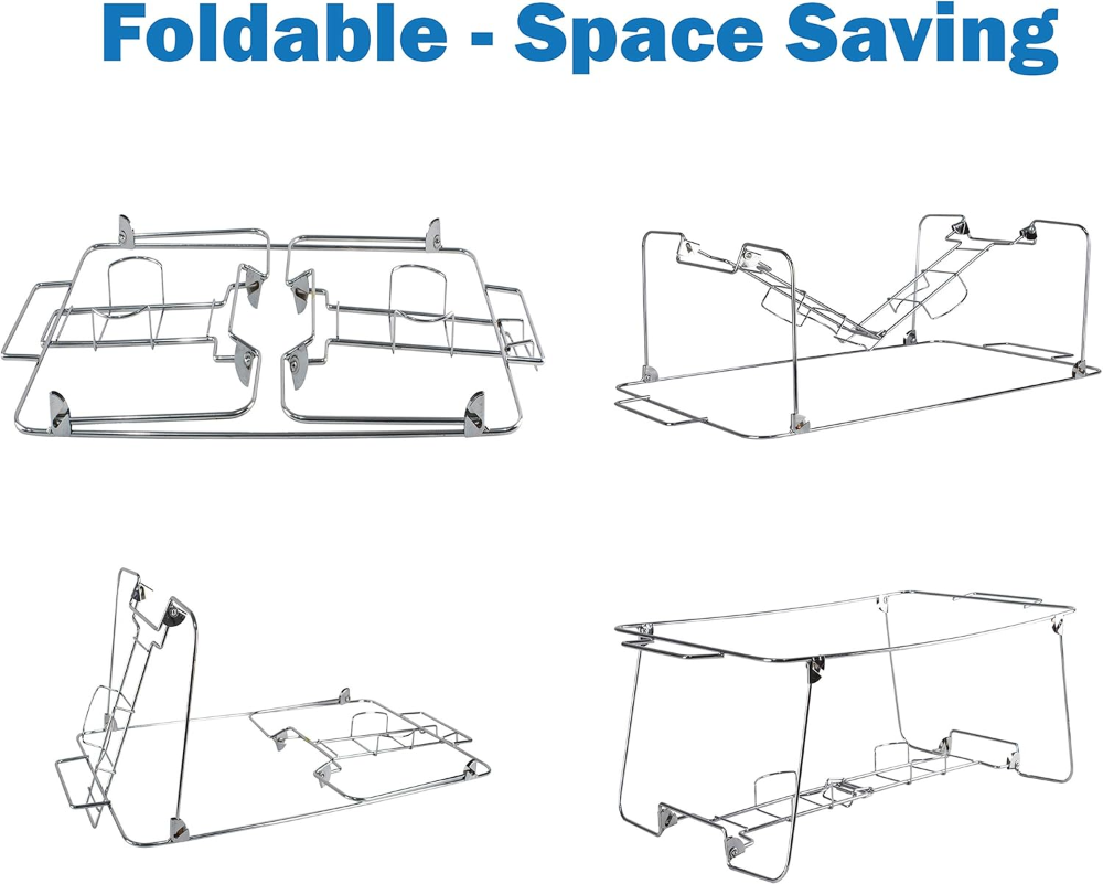 Paquete de 6 soportes de alambre plegables para bufé, marco cromado, bandejas para servir alimentos | Fácil plegable plegable para almacenamiento y reutilización para fiestas en casa, bodas