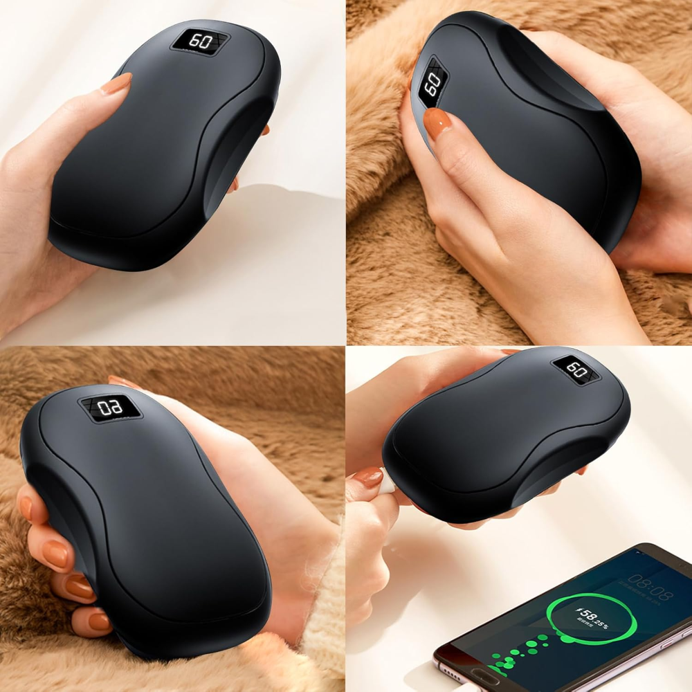 Calentador de manos recargable Mokeum 2 en 1 con batería de 3600 mAh y función de banco de energía, ideal para actividades al aire libre, viajes o uso diario en invierno. Su diseño compacto y de aluminio ofrece calentamiento rápido en solo 3 segundos, con cobertura completa en ambos lados para mantener las manos calientes uniformemente. Incorpora tres niveles de temperatura ajustable (40 °C, 50 °C y 60 °C) y una pantalla LCD que muestra la temperatura en tiempo real. Su sistema de seguridad de 5 capas con protección contra sobrecarga, cortocircuito y sobrecalentamiento garantiza un uso confiable. También puede cargar tu teléfono u otros dispositivos, siendo una opción práctica y portátil para hombres y mujeres.