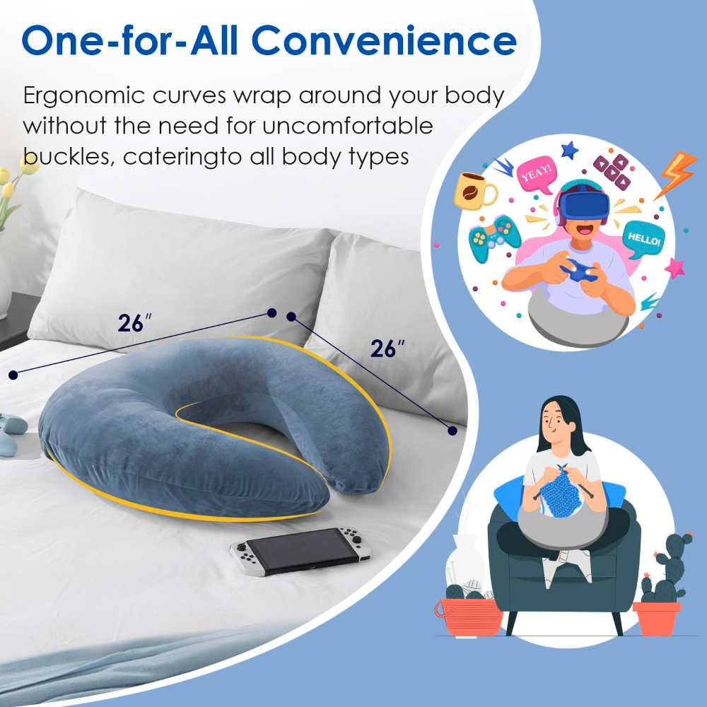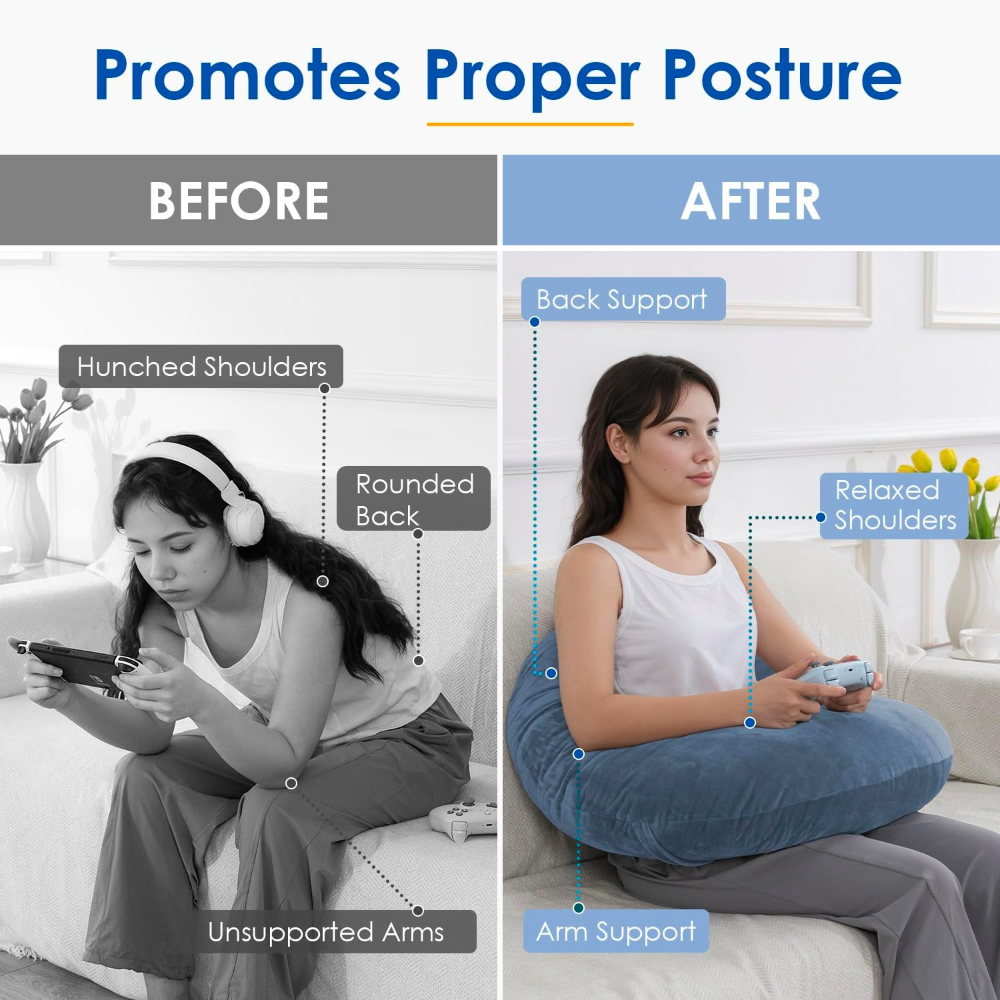 QUEEN ROSE Almohada de lectura, almohada de juegos para regazo, sentado en la cama o sofá, reposabrazos extra para leer, jugar o hacer ganchillo, terciopelo suave azul