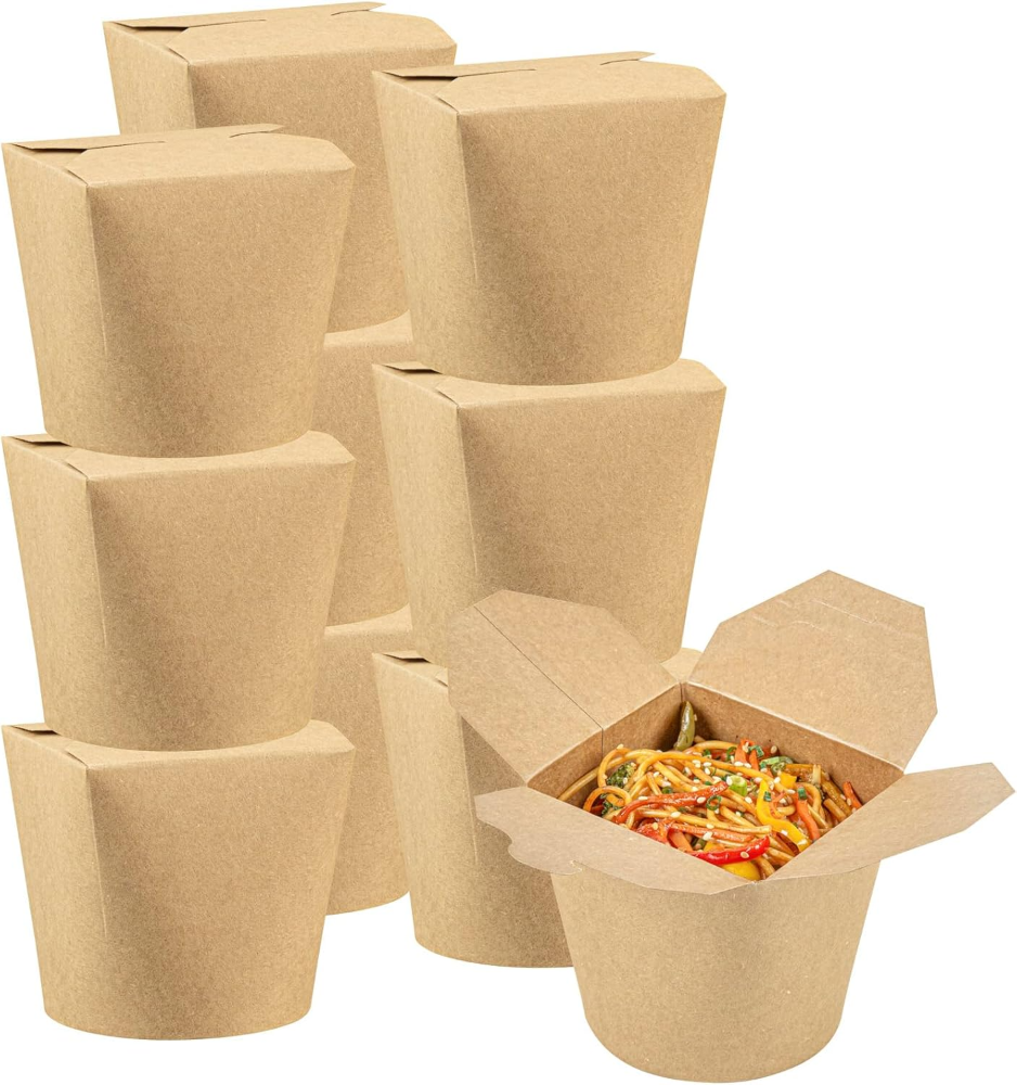 Restaurantware Bio Tek – Recipientes de alimentos de 4 x 3.4 x 3.7 pulgadas, 200 cajas de fideos duraderas, papel kraft sostenible desechable, cajas redondas de 26 onzas para llevar o entrega express.