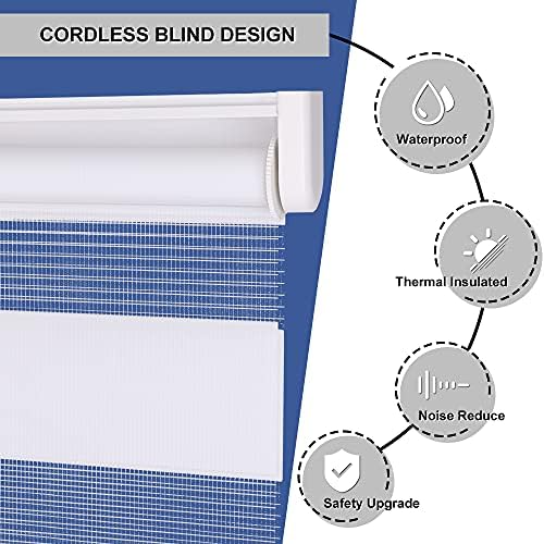 SEEYE Persianas enrollables sin cordones con diseño de cebra, de doble capa para filtrar la luz, oscurecimiento de la habitación, tratamiento horizontal de ventana, 40 pulgadas de ancho x 72 pulgadas