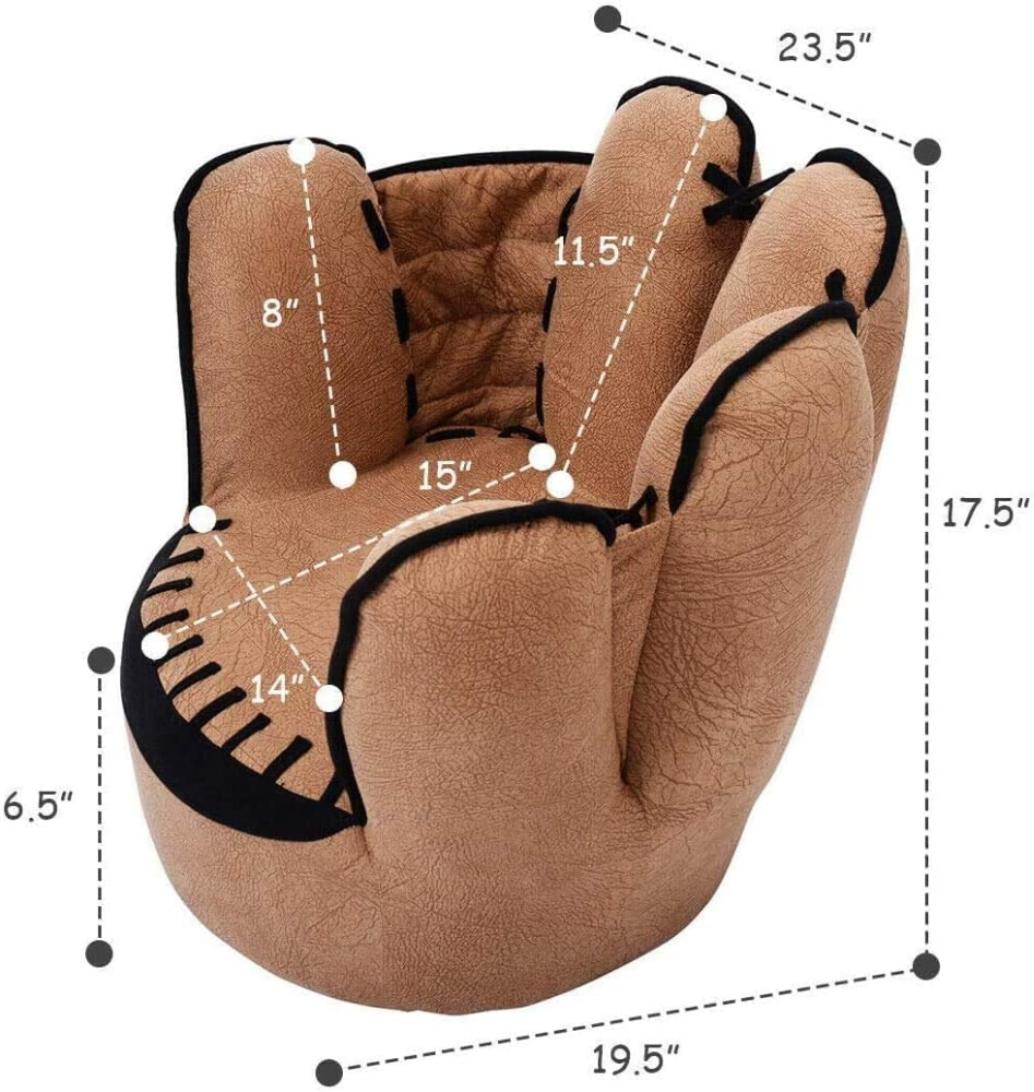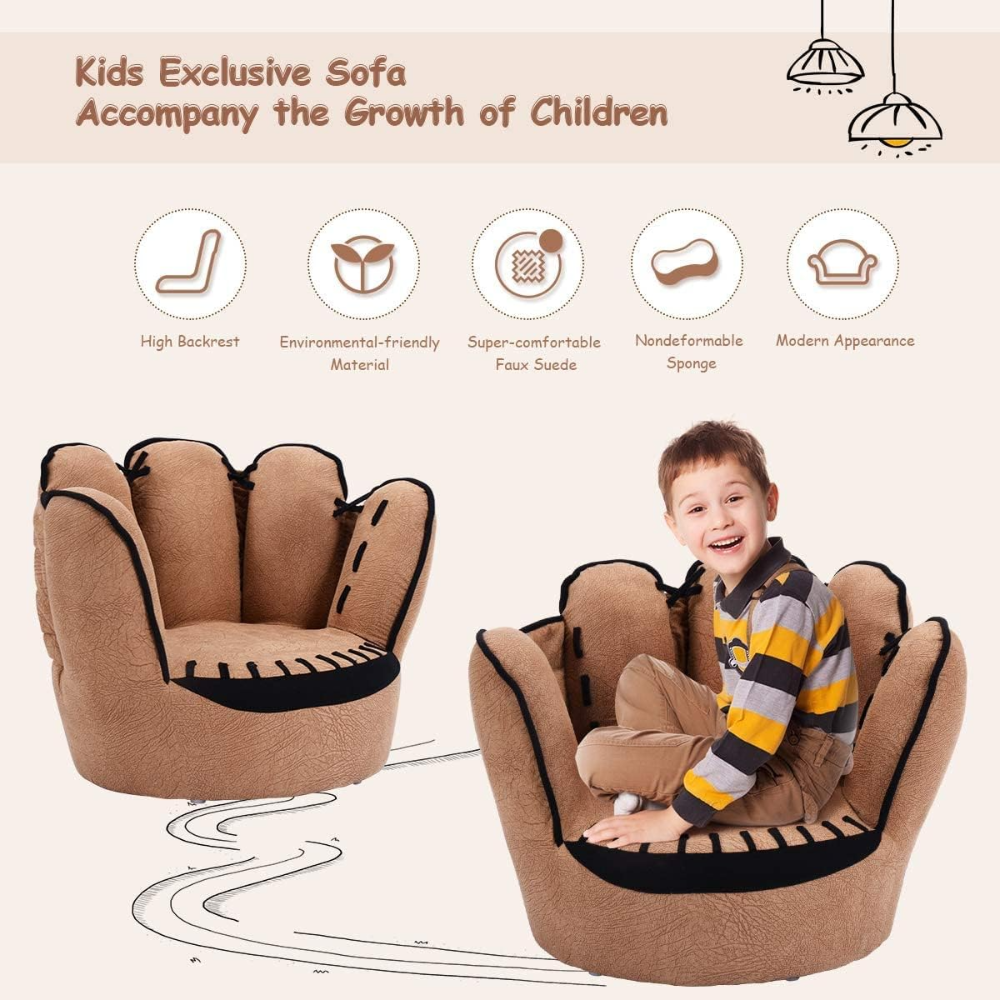 Sofá para niños, silla tapizada para niños pequeños con construcción de madera, sillón con forma de guante de béisbol para niños y niñas, color marrón