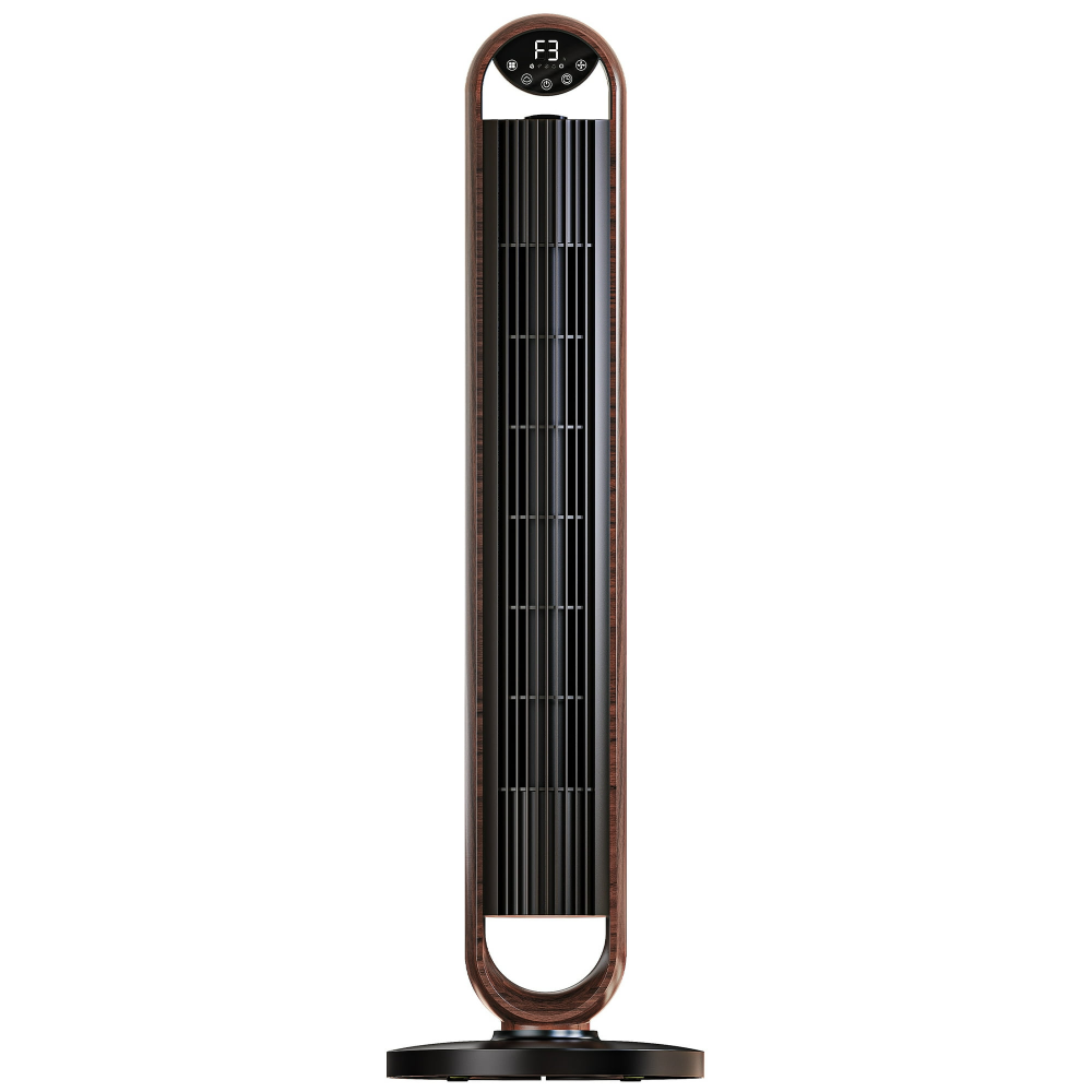Ventilador de Torre Oscilante de 40» y 5 Velocidades con Control Remoto, 3 Modos de Viento, Temporizador de 12 Horas, Nogal y Negro