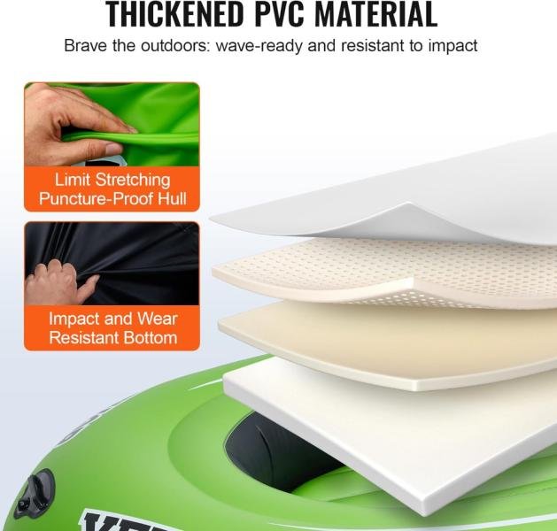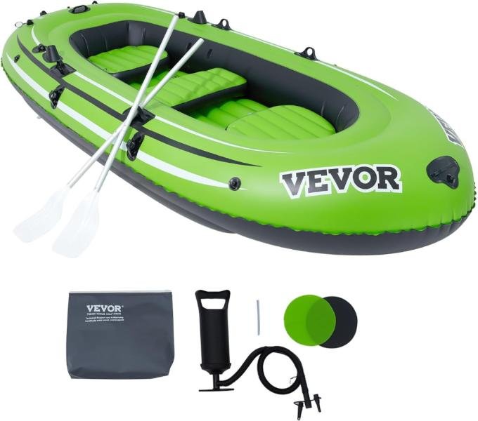 VEVOR – Lancha inflable, Capacidad para cinco personas y soporta hasta 1100 lbs, con asientos cómodos y espacio para las piernas, plegable, cabe en el maletero de un coche, aventuras acuáticas y pesca