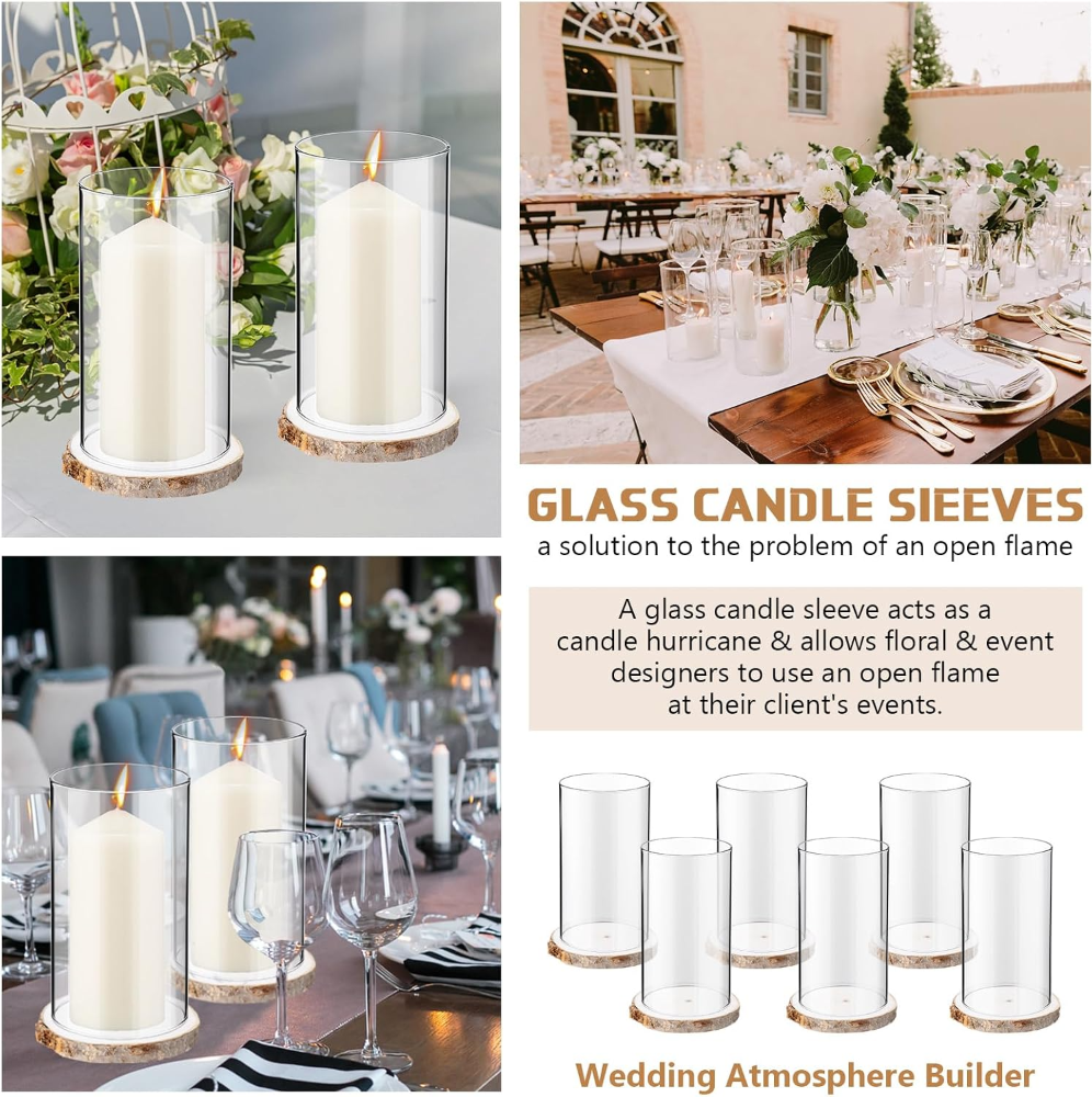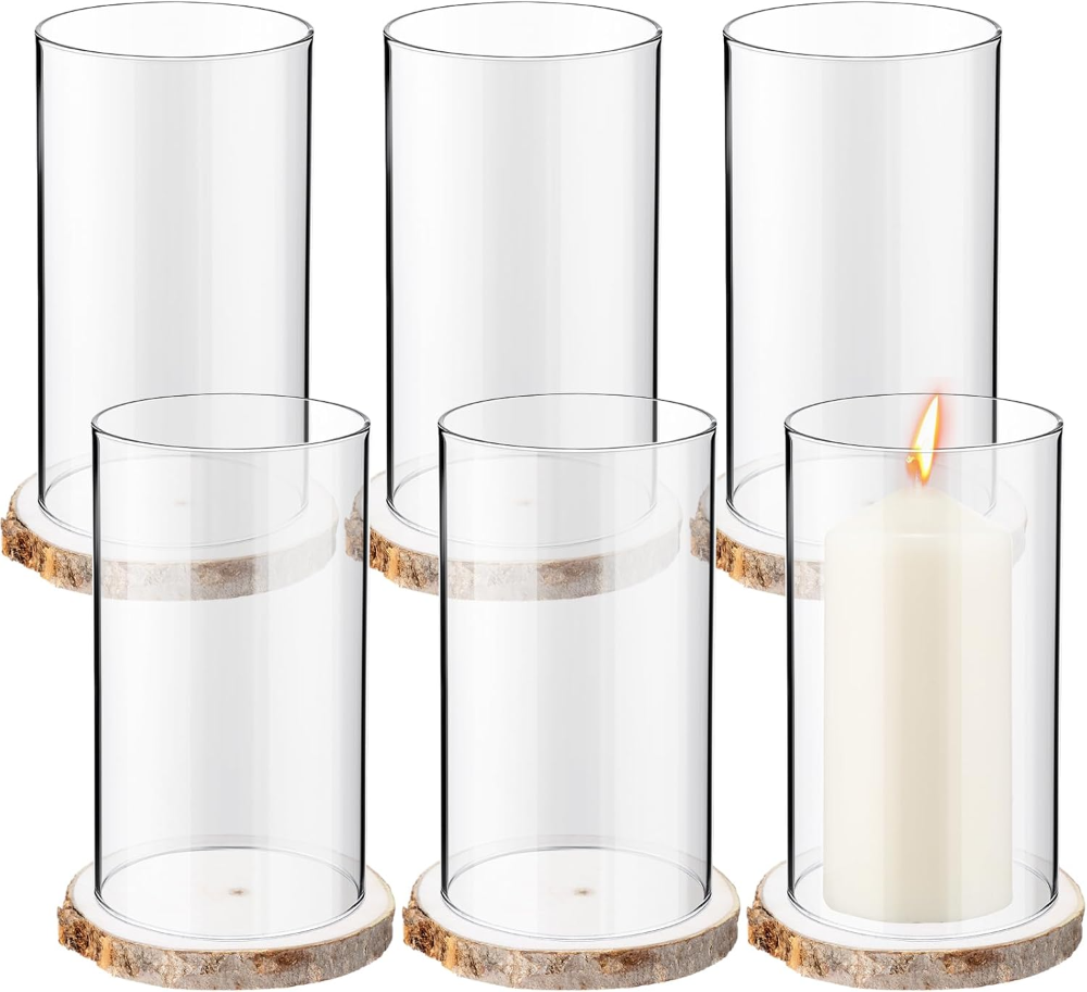 Amplia cantidad: El paquete incluye 6 juegos completos de portavelas de huracán, cada uno con una funda de vidrio y una base de madera maciza. Esto es ideal para satisfacer tus necesidades en eventos grandes o como decoración en múltiples espacios.