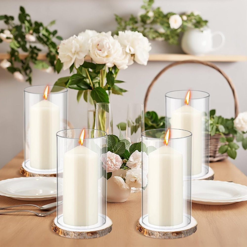 Fácil de usar: Con su diseño sin fondo y abierto por ambos lados, simplemente colocas la vela sobre la base de madera y luego cubres con el cilindro de vidrio. Este método es conveniente y ahorra tiempo y energía.
